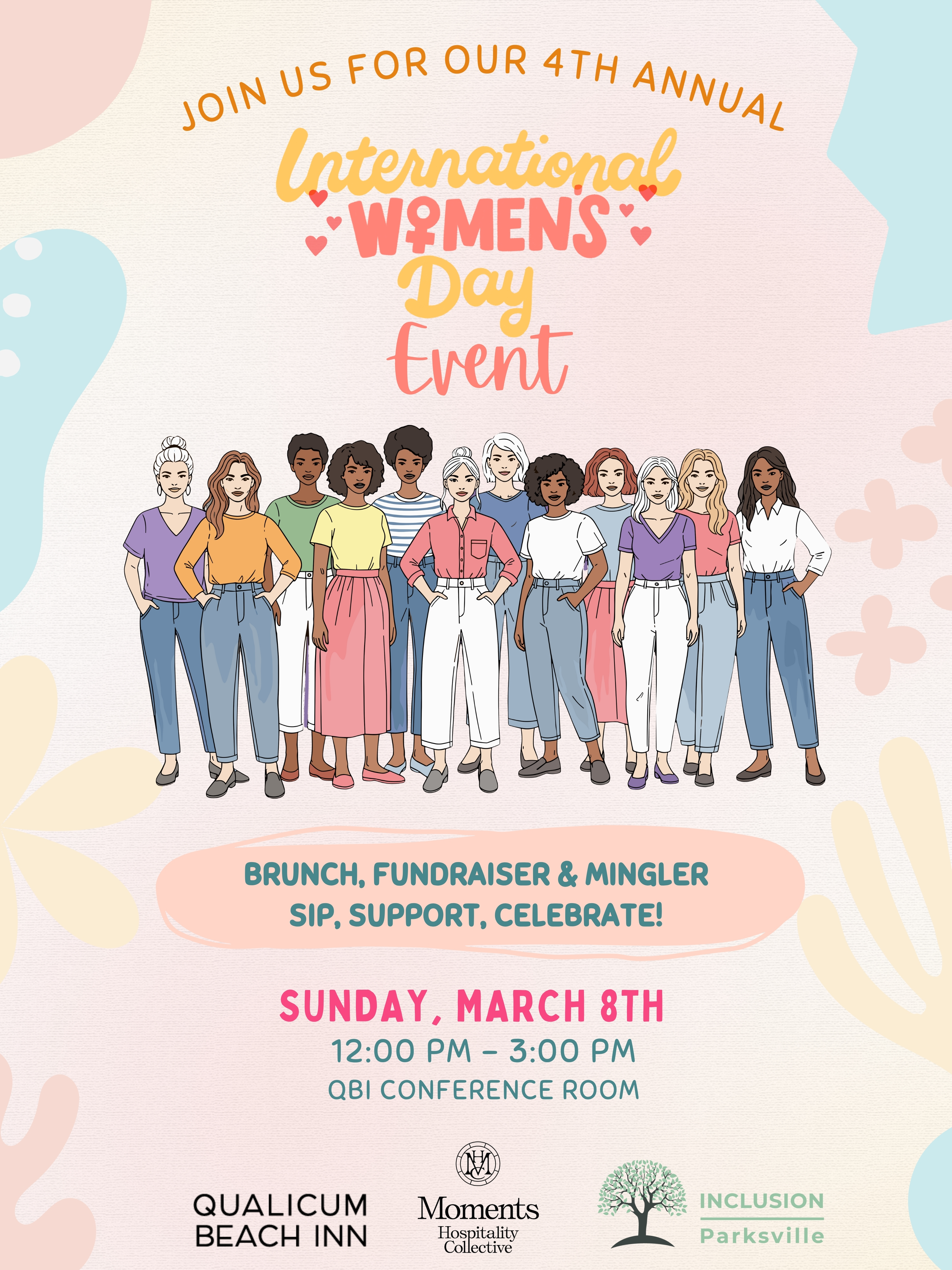 Organized by the teams at Moments Hospitality and Qualicum Beach Inn - we are thrilled to be hosting our fourth International Women’s Day Event. We thank you for supporting our community, our local small businesses, and the empowerment of women in the Oceanside area and beyond.